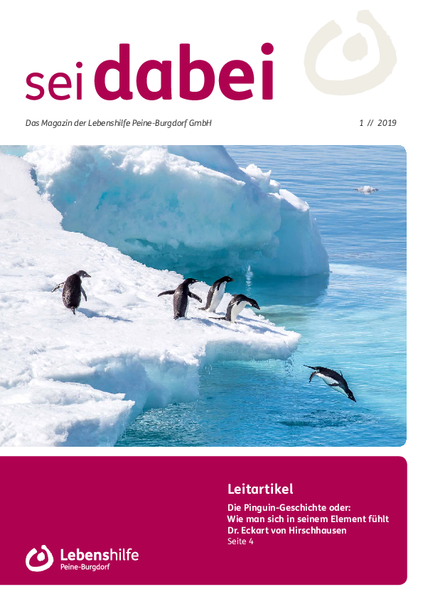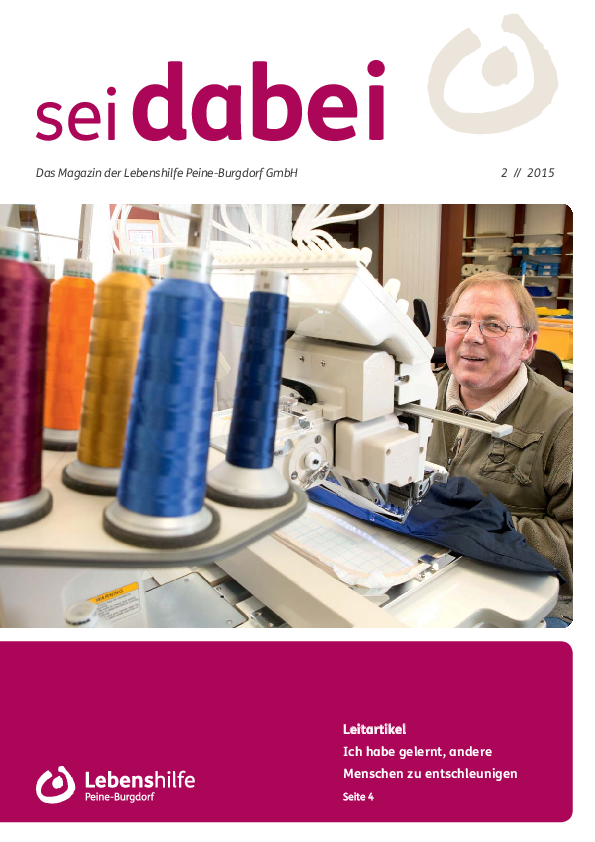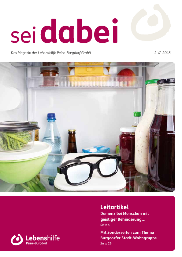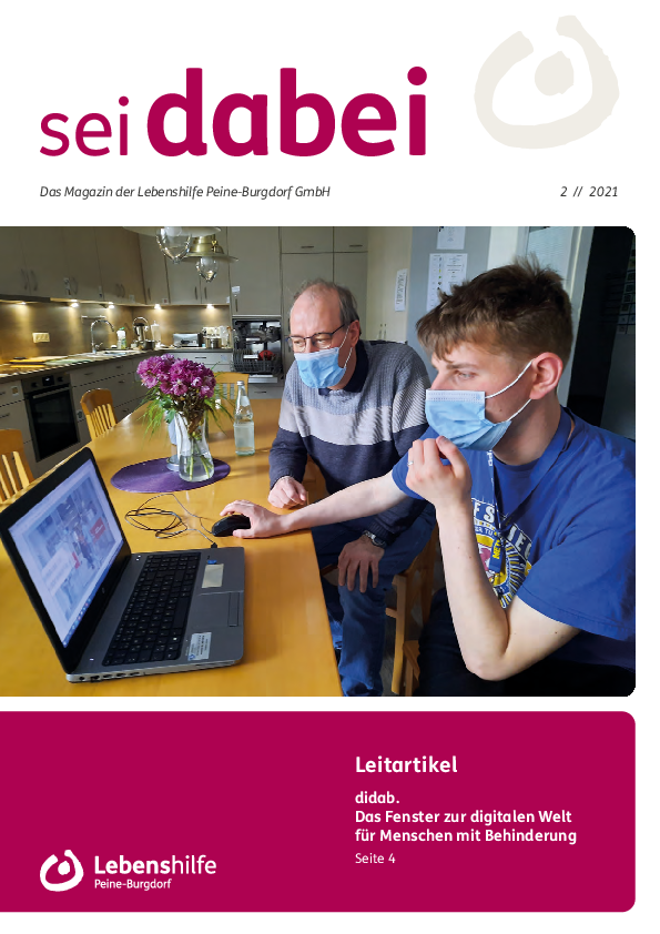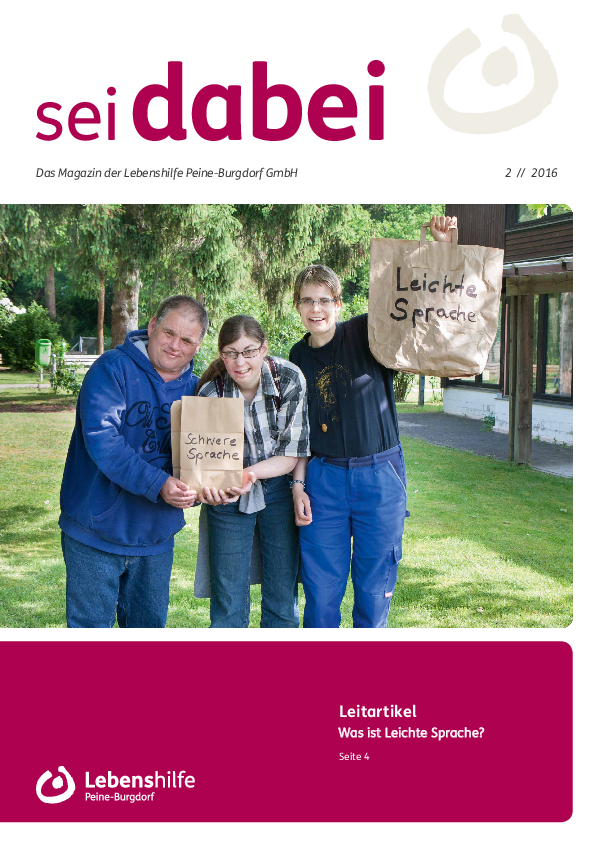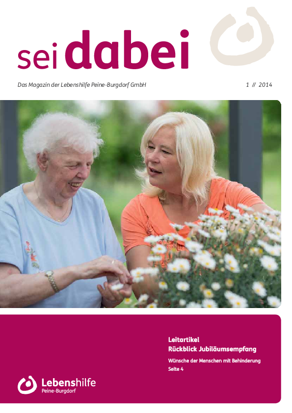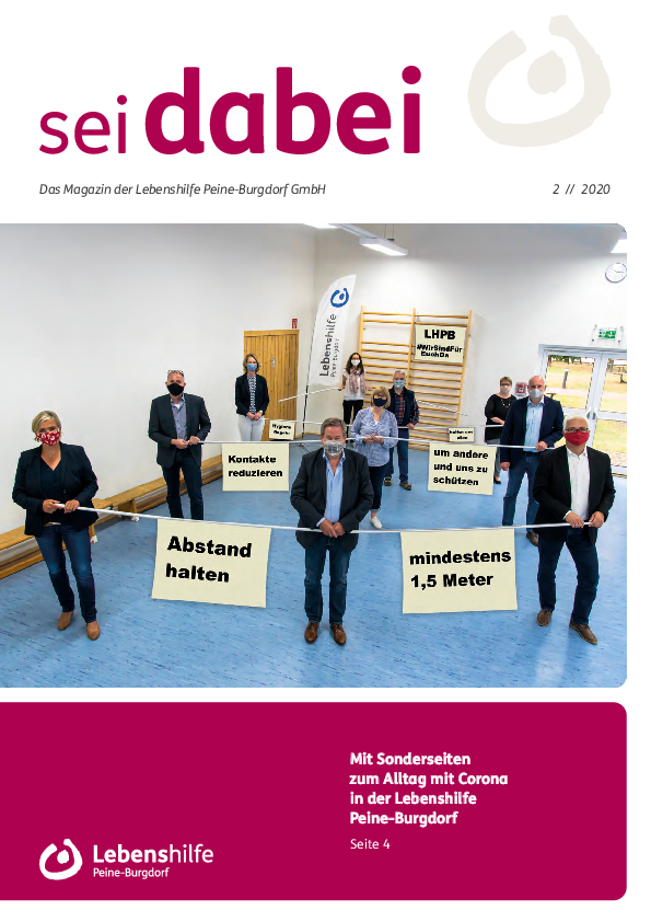 Mit unserem Magazin möchten wir Ihnen interessante Einblicke in unsere Arbeit gewähren. "sei dabei" soll außerdem Anregungen für eine inhaltliche Auseinandersetzung mit relevanten Themen geben – oder Ihnen einfach nur Freude beim Durchblättern machen. Manche Texte sind in Leichter Sprache, manche in Ausgangssprache geschrieben, ganz wie Sie mögen.