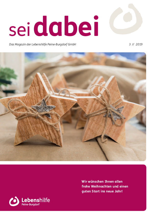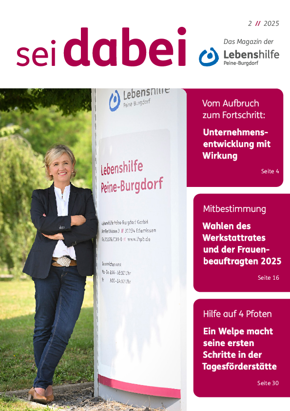 Unser Kundenmagazin „sei dabei“ erscheint dreimal im Jahr und informiert über das Geschehen in unseren Einrichtungen und rund um die Lebenshilfe Peine-Burgdorf. Reinschauen lohnt sich!